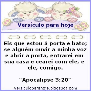 Muito, muito interessante esta idéia de postar versículo do dia, e haja disposição, afinal precisa postar diariamente, Deus a abençoe. Esta idéia que precisa ser divulgada amplamente, conte conosco.